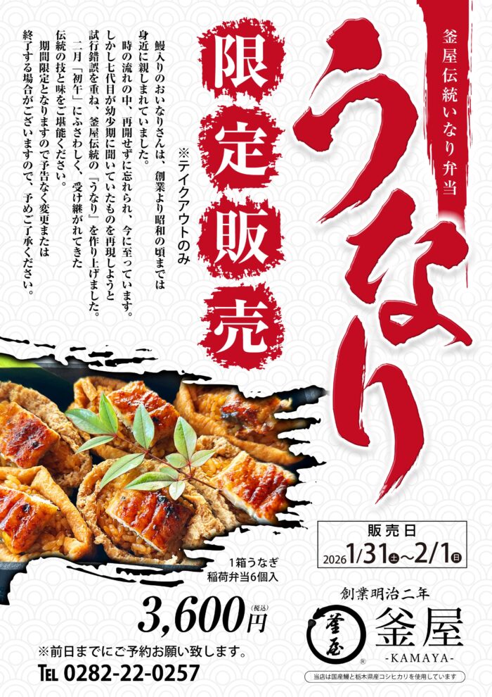 【2日間限定】釜屋の「うなり」予約受付中!